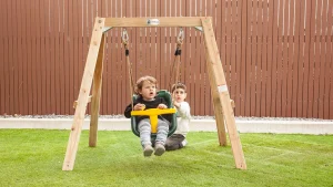 Make sure the swing set is in good condition before utilising it. Look for deteriorating ropes, loose nuts, and fractures in the frame. Check that all of the links are robust and tight. Doing frequent checks can help you avoid breaks that could damage someone. You should fix any damage right away or cease using the swing until it is.
